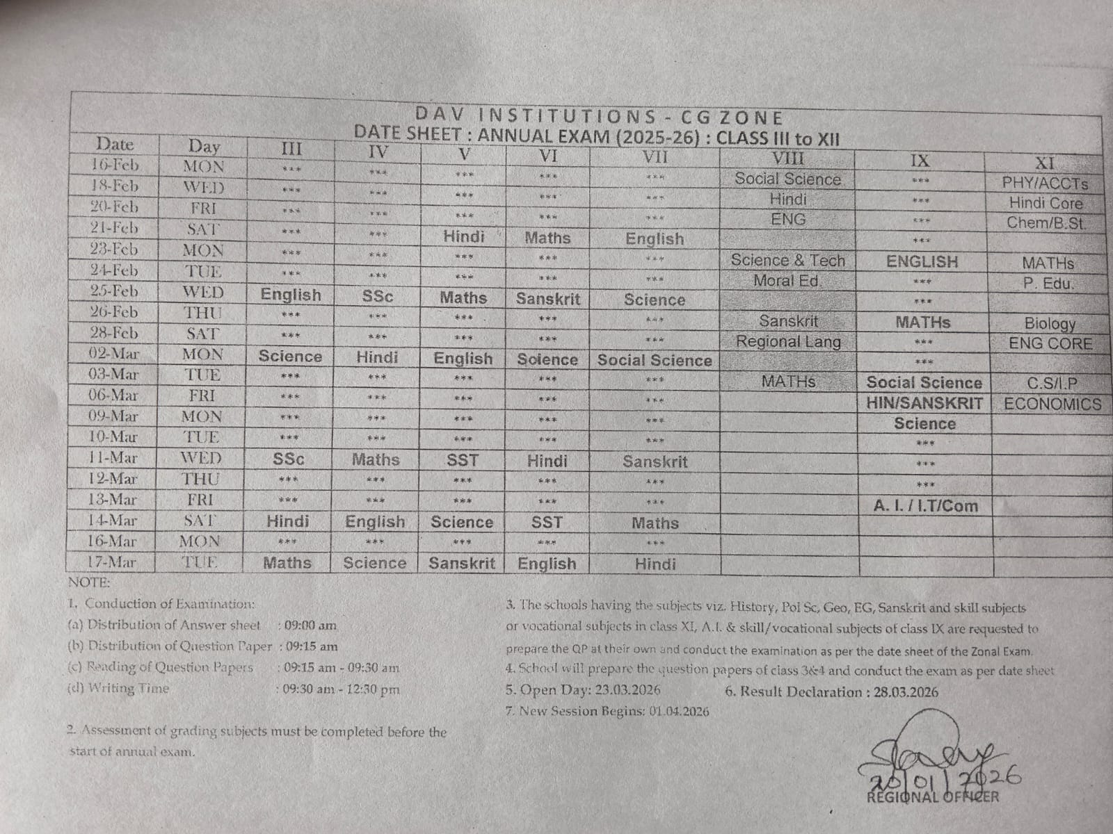 DATESHEET OF CLASSES III - IX & XI (2025-26)